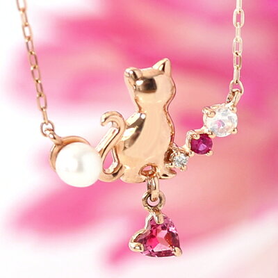 【あす楽対応】猫 ねこ ネックレス ジュエリー レディース ダイヤモンド ダイアモンド 淡水パール ルビー ピンクトルマリン ブルームーンストーン・プリューナ K10 10K 10金 ピンクゴールド 可愛い 誕生日プレゼント 女性 デザインネックレス ブランド 宝石
