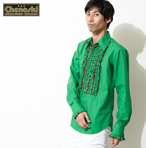 Chenaski フリルシャツ 長袖シャツ 衣装 【送料無料】チェナスキー メンズ モッズ ファッション フリル シャツ 長袖 ロング スリーブ Long Sleeve ダーク グリーン Dark Green レッド フリフリ ゴシック chenaski060 コットン ボタン *m *l プレゼント ギフト クリスマス
