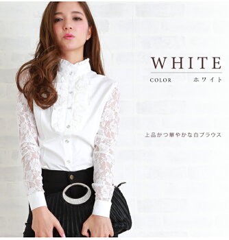 \ こちらも CHECK! /商品説明 スタンドカラーとたっぷりフリルデザインのレースブラウス! 袖のレースの透け感が上品でエレガントなブラウスです。